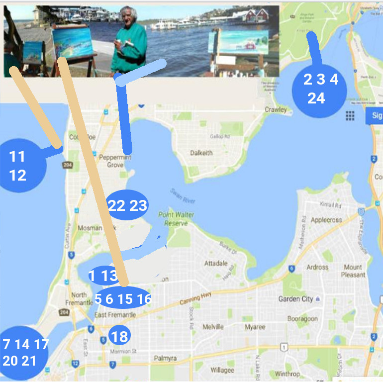 Map of Swan River from Perth city to Freo and the sea